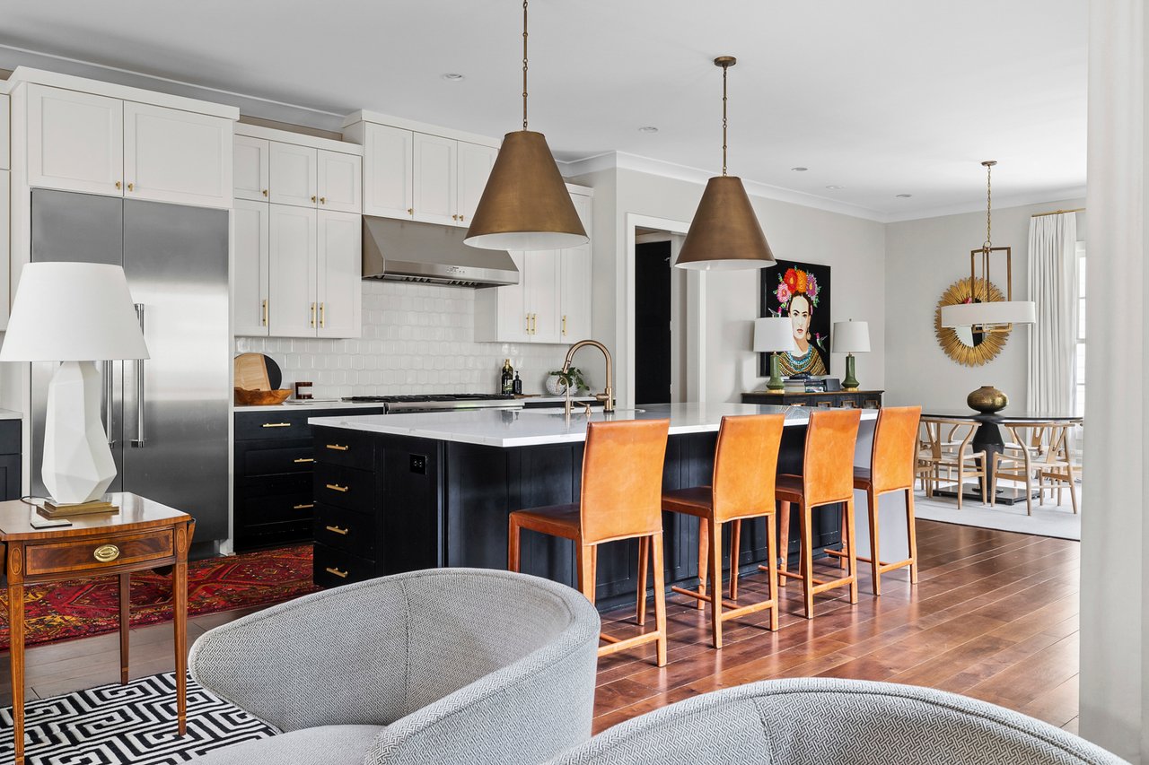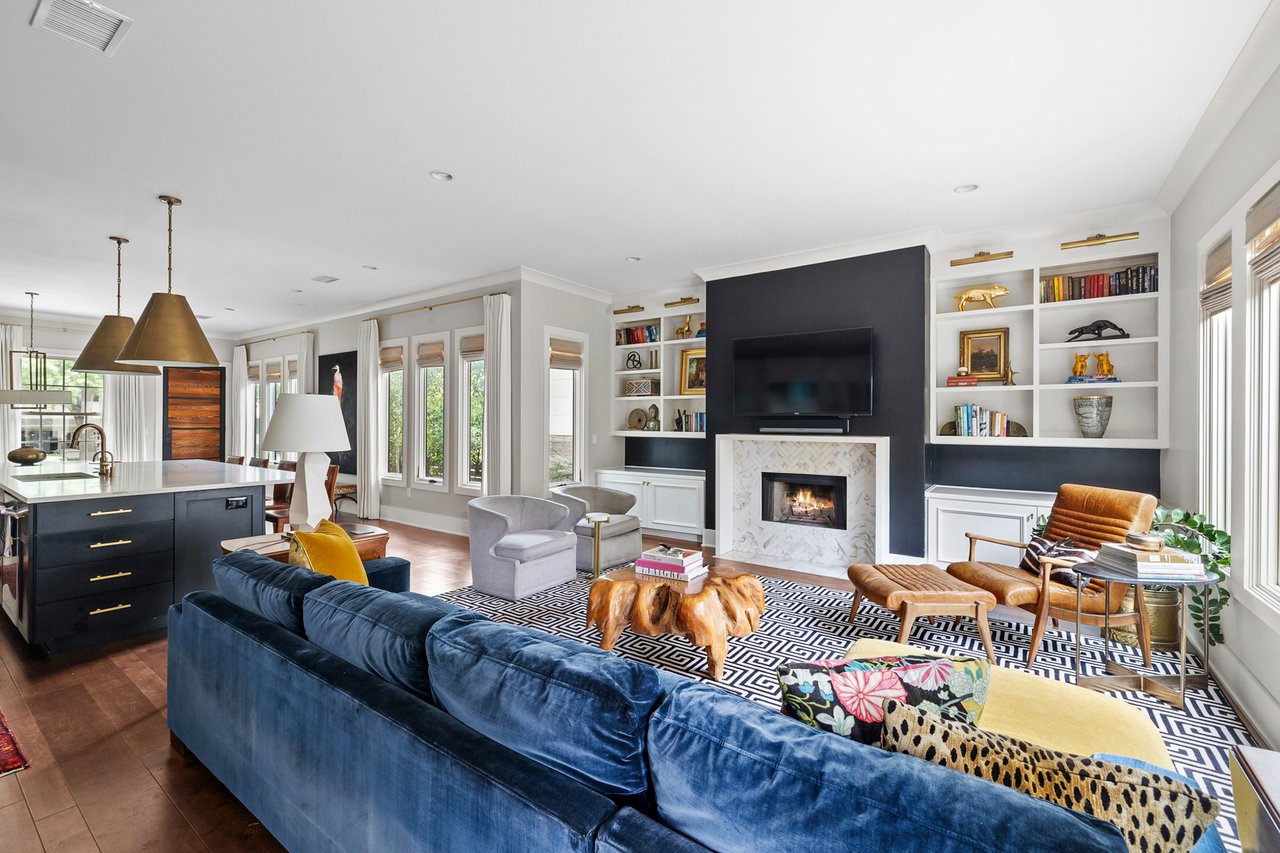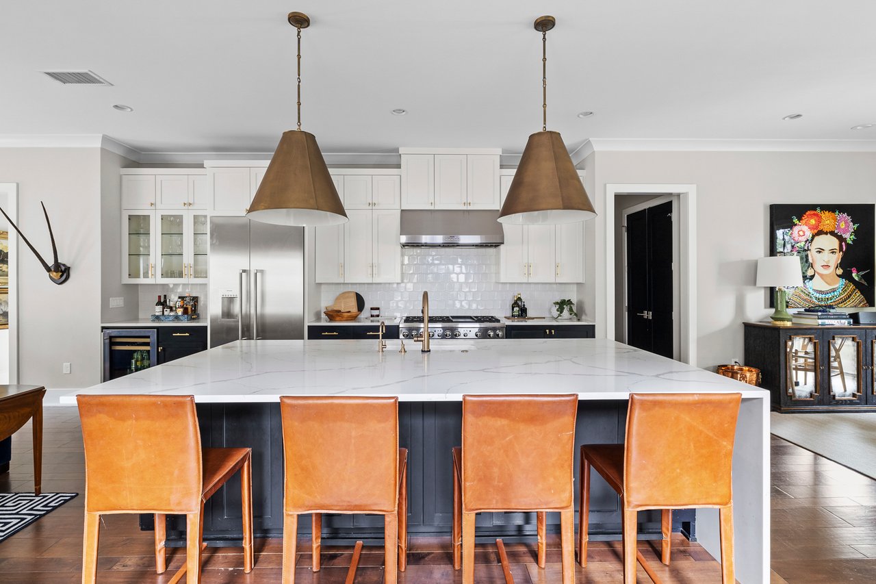 Step inside to an open-concept floor plan centered around an expansive kitchen that is bookended by a well-appointed dining room and a spacious living area overlooking the backyard. Character and the ease of daily living are felt throughout with open bookshelves, marble surround fireplace, dedicated dry bar, powder bath, a tucked away office nook and much more.