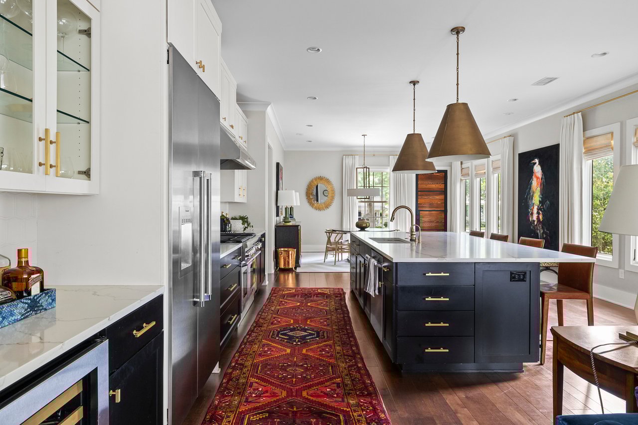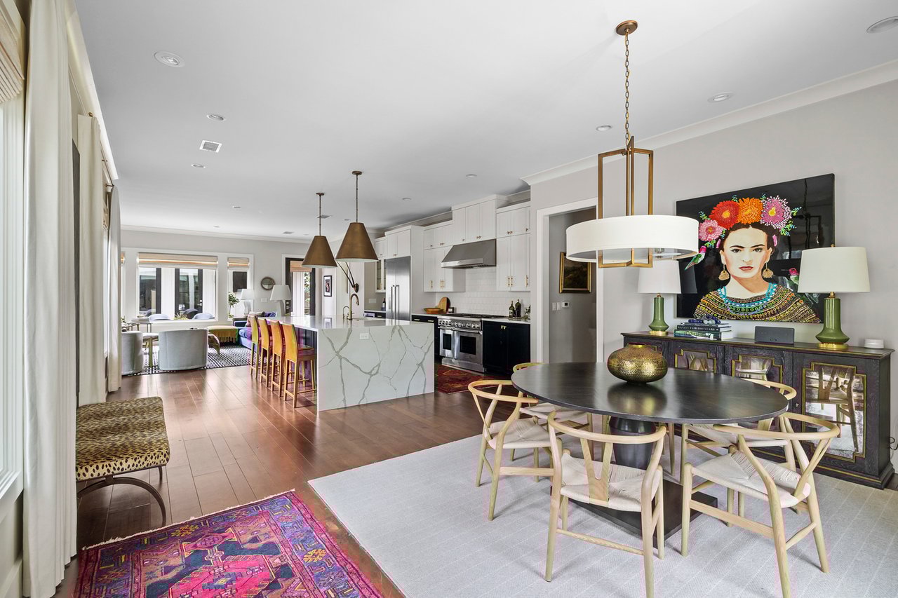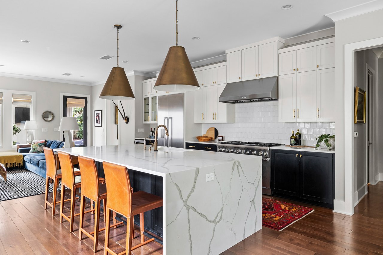 Step inside to an open-concept floor plan centered around an expansive kitchen that is bookended by a well-appointed dining room and a spacious living area overlooking the backyard. Character and the ease of daily living are felt throughout with open bookshelves, marble surround fireplace, dedicated dry bar, powder bath, a tucked away office nook and much more.