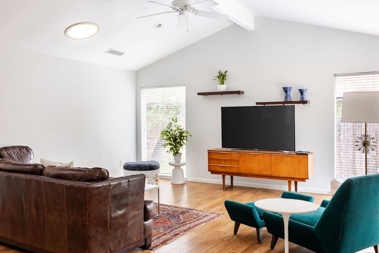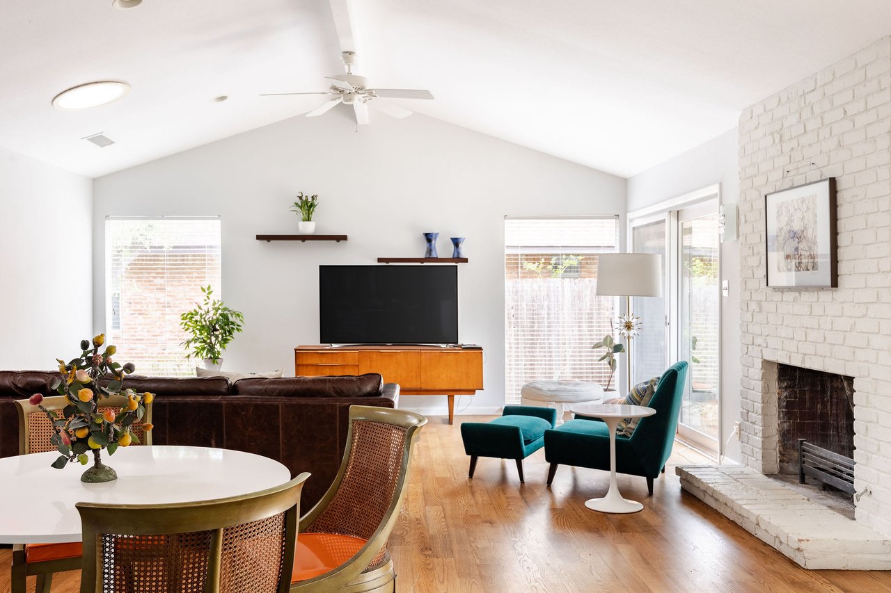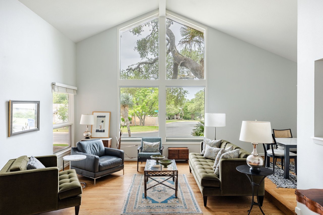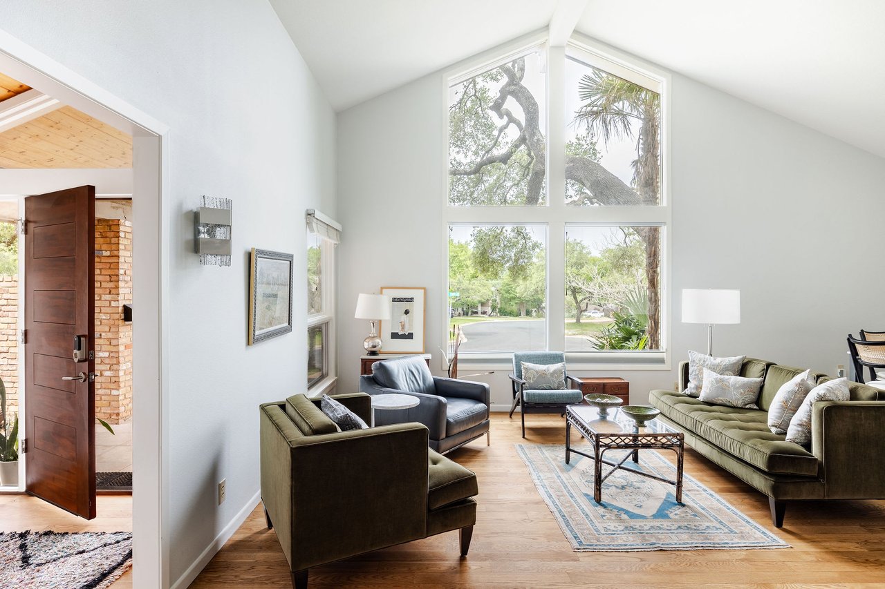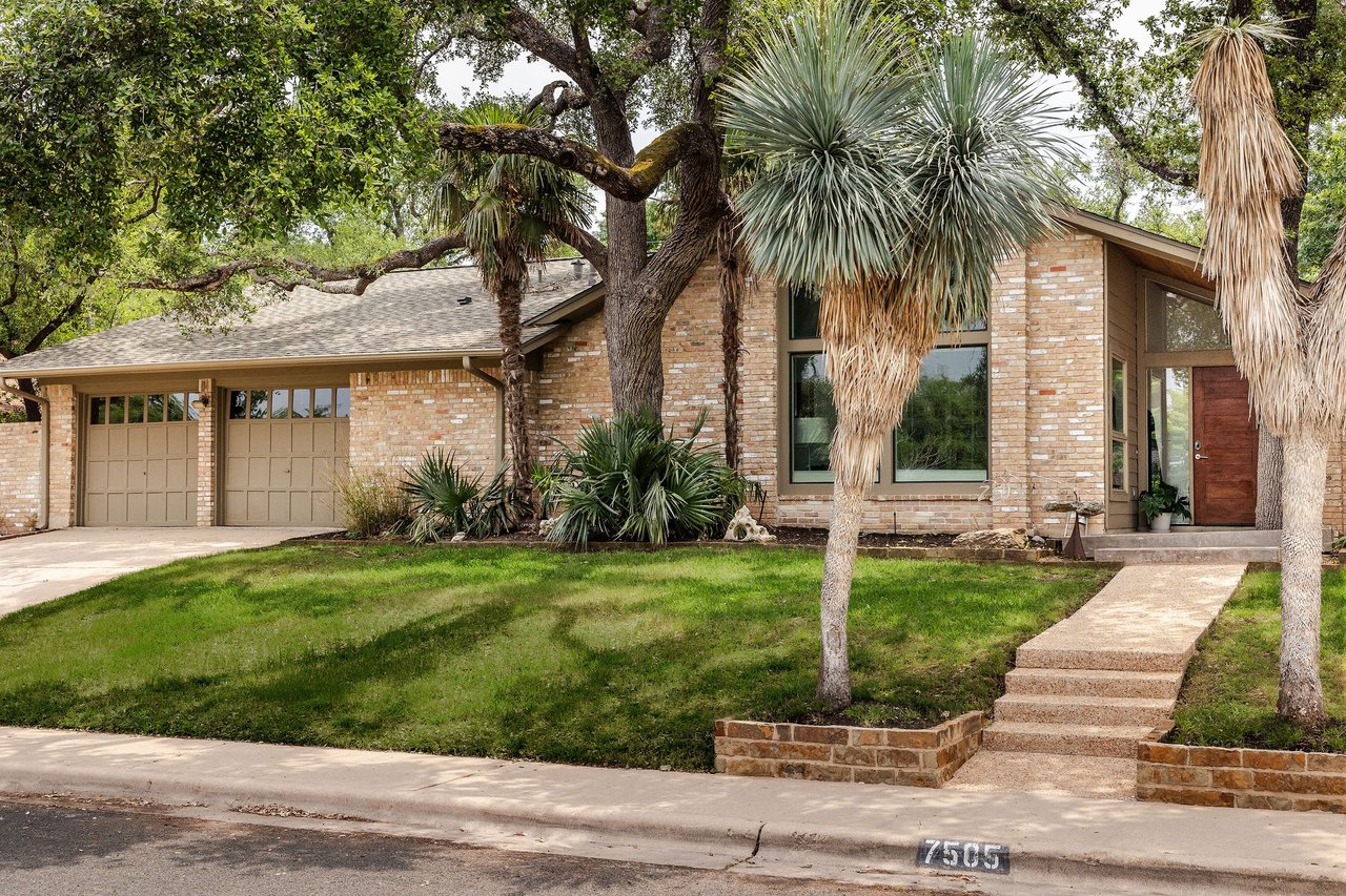 This brick mid-century home in Northwest Hills anchors a spacious lot sheltered by mature trees. The home’s entrance takes advantage of the property's set-back position, offering the utmost privacy under a beautiful wood-ceilinged portico. At 2,612 SF, with 4 bedrooms and 3 baths, 7505 Long Point Drive’s abundant glass, pitched architectural lines, and medium-tone hardwood floors provide a strikingly transitional canvas. The open layout features an iconic sunken living room, two dining areas, a family room, and a built-in desk area in the heart of the home, giving you flexibility for how you live. The picture is complete with a timeless kitchen, gracious bedrooms, a landscaped backyard with a stone terrace, and a two-car garage. Live in leafy, family-friendly, and sought-after Northwest Hills. Nestled between MoPac and 360, with easy access to 183, this central neighborhood is less than 10 miles from Downtown and Lady Bird Lake, giving you suburban charm within Austin’s fast-growing and dynamic core. You'll enjoy being adjacent to The Domain, Great Hills/Arboretum, and Bull Creek Park.