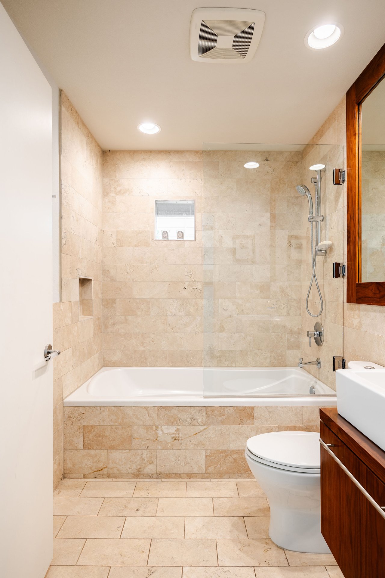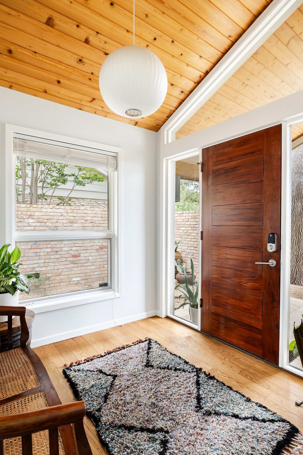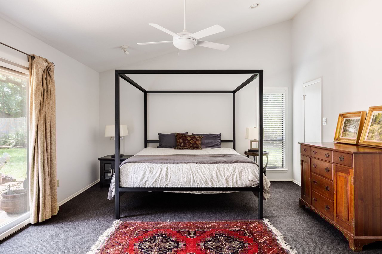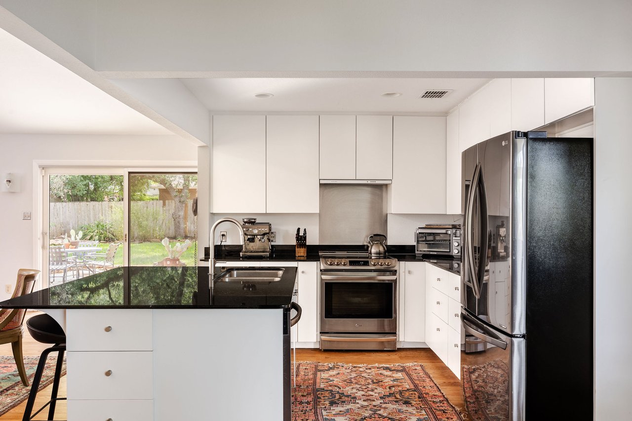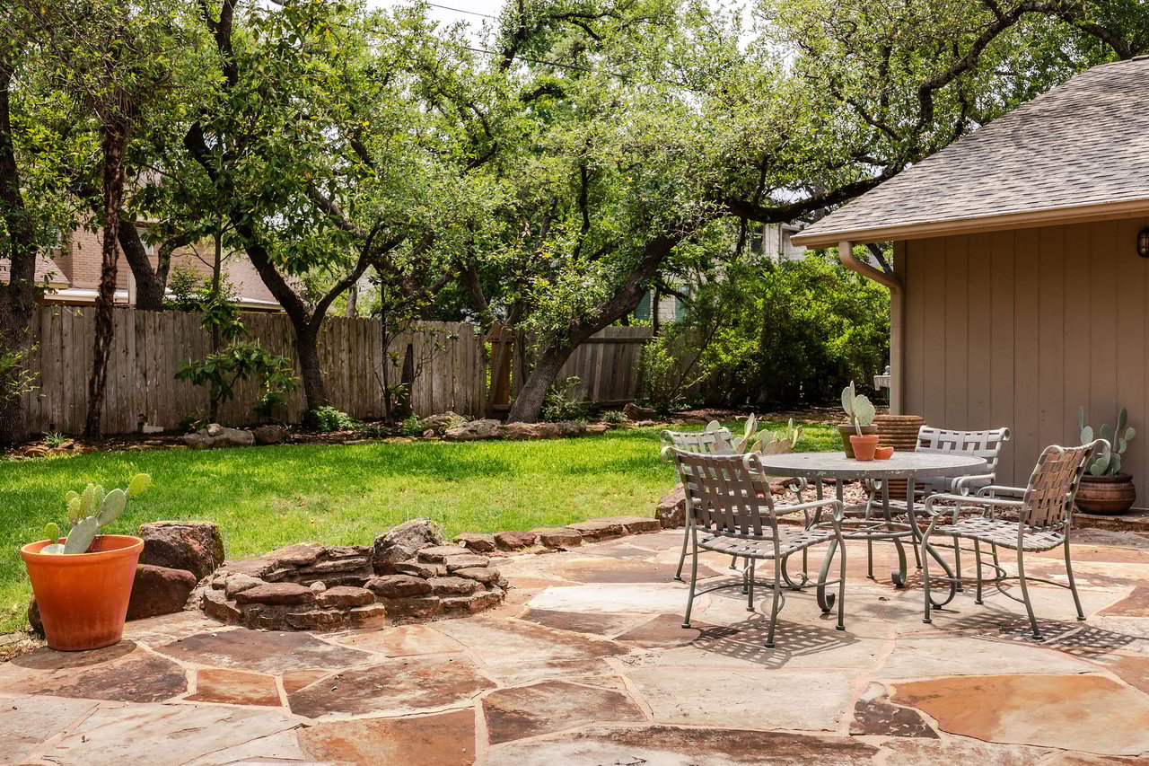 This brick mid-century home in Northwest Hills anchors a spacious lot sheltered by mature trees. The home’s entrance takes advantage of the property's set-back position, offering the utmost privacy under a beautiful wood-ceilinged portico. At 2,612 SF, with 4 bedrooms and 3 baths, 7505 Long Point Drive’s abundant glass, pitched architectural lines, and medium-tone hardwood floors provide a strikingly transitional canvas. The open layout features an iconic sunken living room, two dining areas, a family room, and a built-in desk area in the heart of the home, giving you flexibility for how you live. The picture is complete with a timeless kitchen, gracious bedrooms, a landscaped backyard with a stone terrace, and a two-car garage. Live in leafy, family-friendly, and sought-after Northwest Hills. Nestled between MoPac and 360, with easy access to 183, this central neighborhood is less than 10 miles from Downtown and Lady Bird Lake, giving you suburban charm within Austin’s fast-growing and dynamic core. You'll enjoy being adjacent to The Domain, Great Hills/Arboretum, and Bull Creek Park.